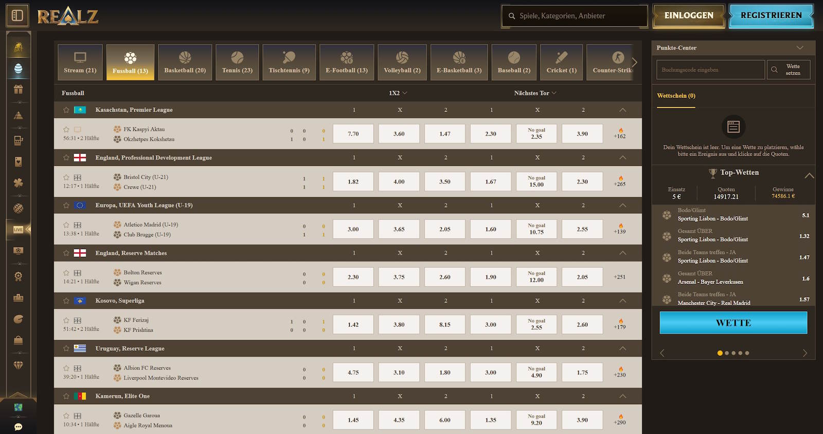 Wenn Sie sich im Realz Casino registrieren, erhalten Sie Zugriff auf ein Willkommensangebot bis zu 500 €. Zusätzlich gibt es 200 Freispiele.
