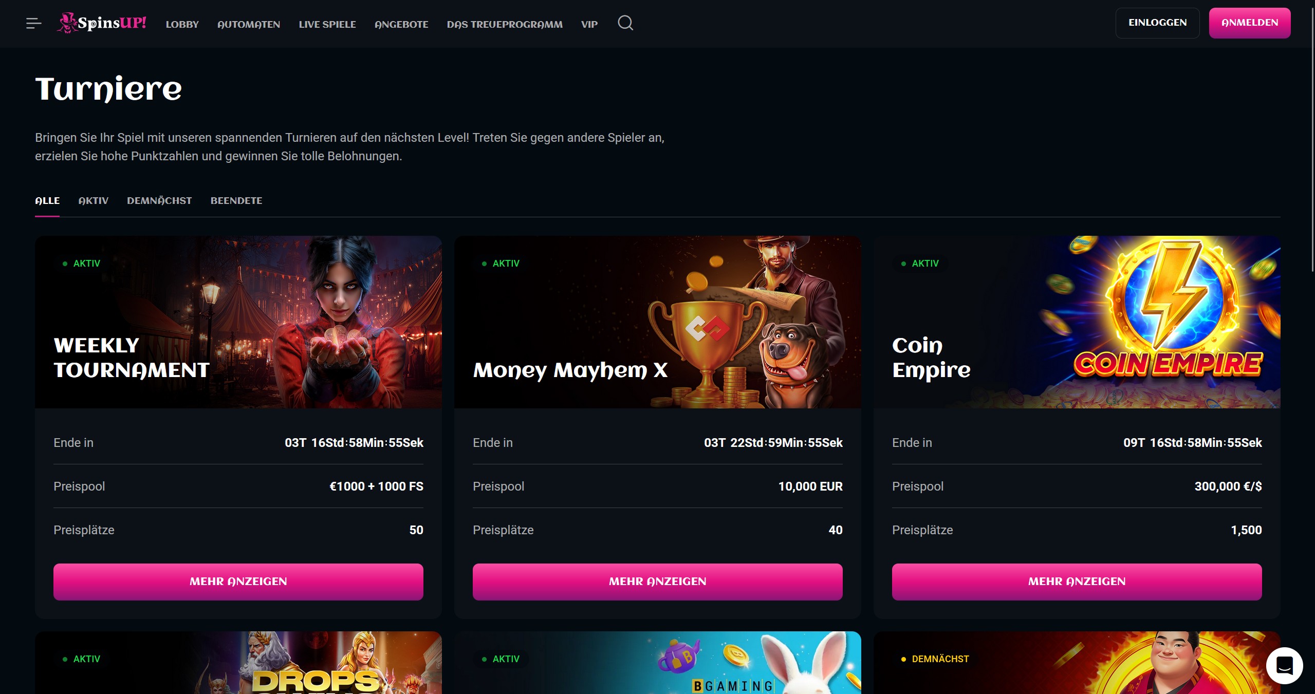 Wenn Sie sich im SpinsUp! Casino registrieren, erhalten Sie Zugriff auf ein Willkommenspaket bis zu 5000 €. Zusätzlich gibt es 300 Freispiele.